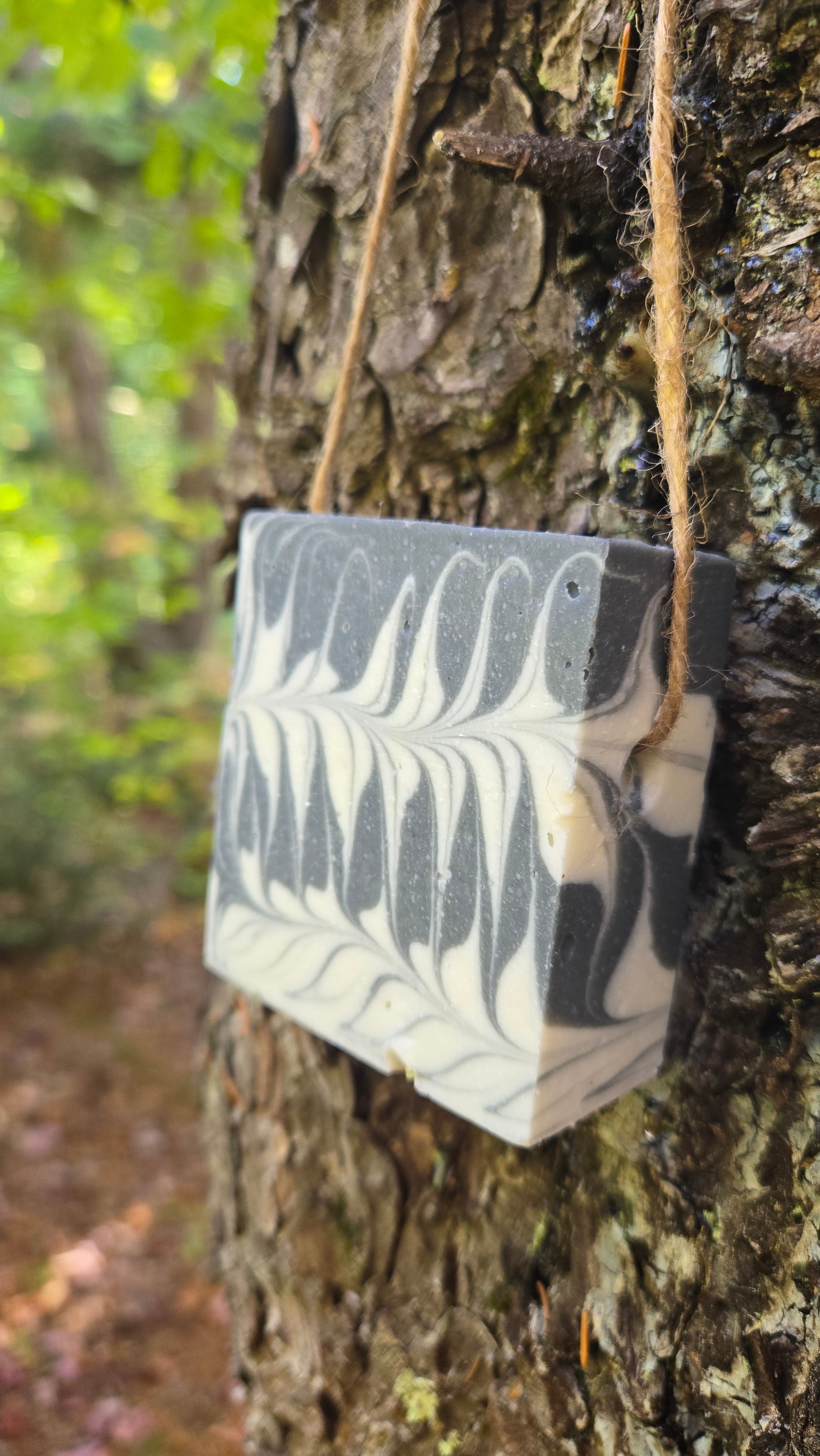 Ce savon naturel est formulé avec de l'huile essentielle de menthe poivrée et du charbon actif pour nettoyer en douceur et purifier la peau. Profitez des bienfaits de l'huile essentielle rafraîchissante et des propriétés purifiantes du charbon actif pour une peau propre et saine.